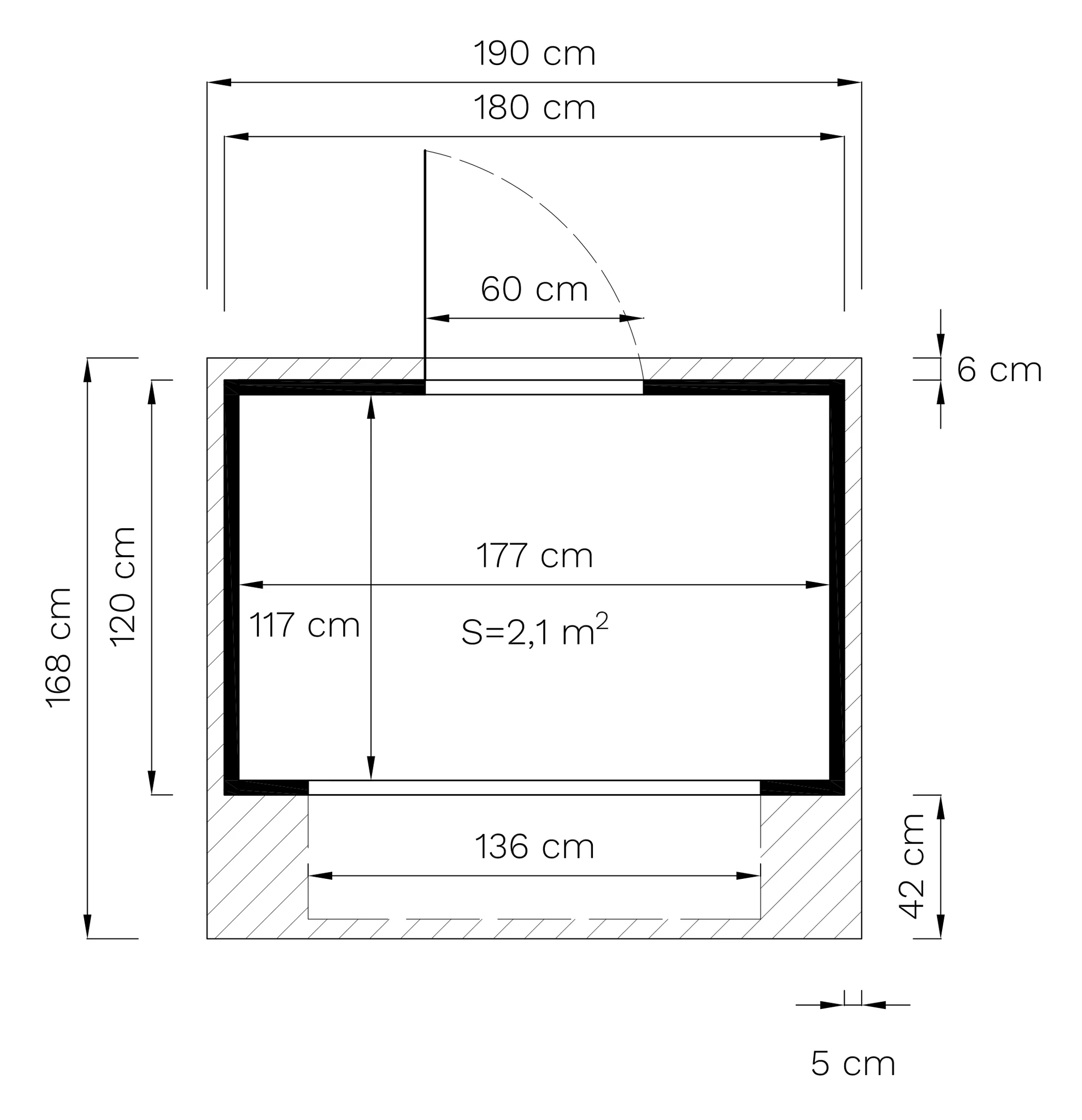 | Sienas izmēri P x A bez jumta pārkares | 180 x 121 cm |